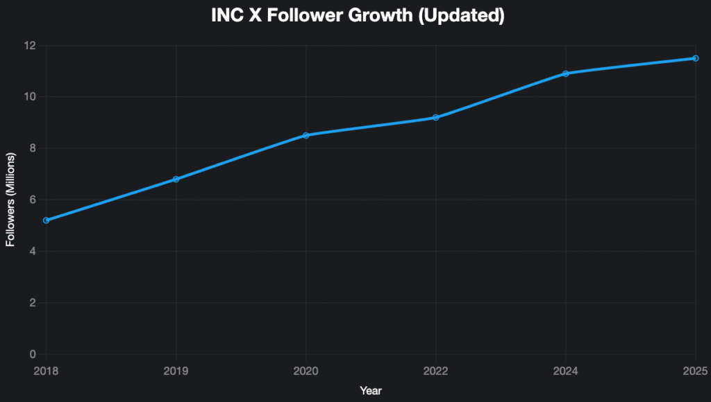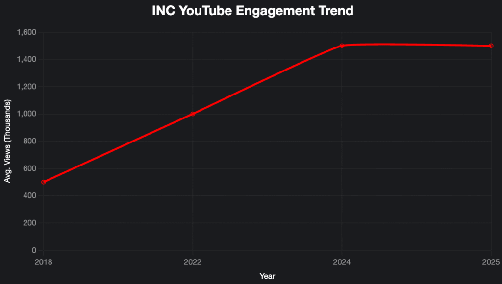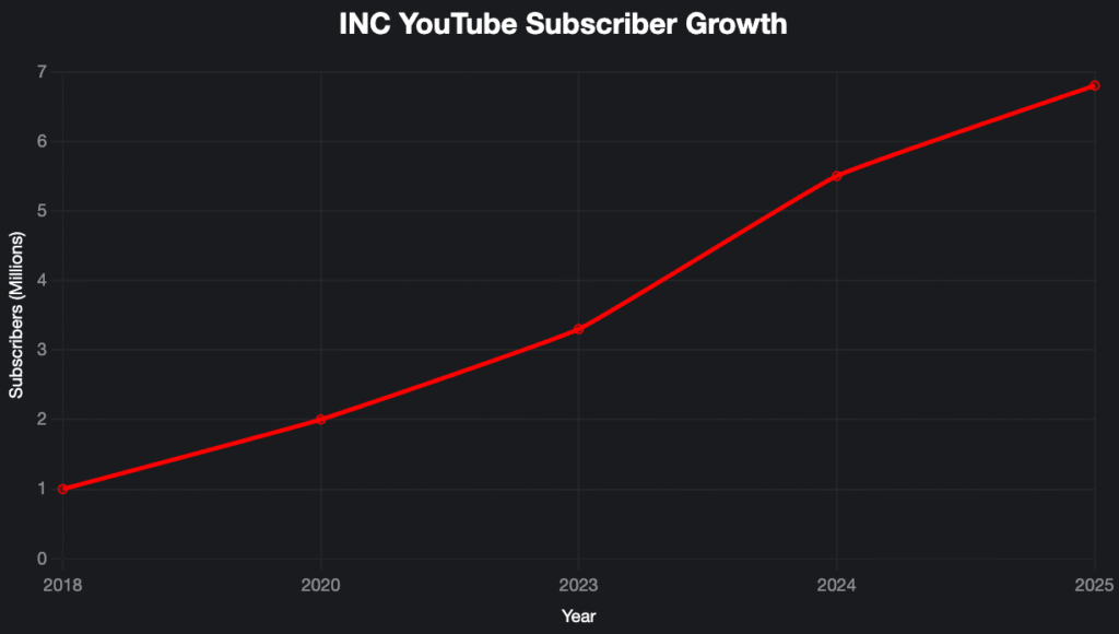 The same is true for YouTube. INC’s subscribers count increased from a million in 2018 to nearly 7 million in 2025.