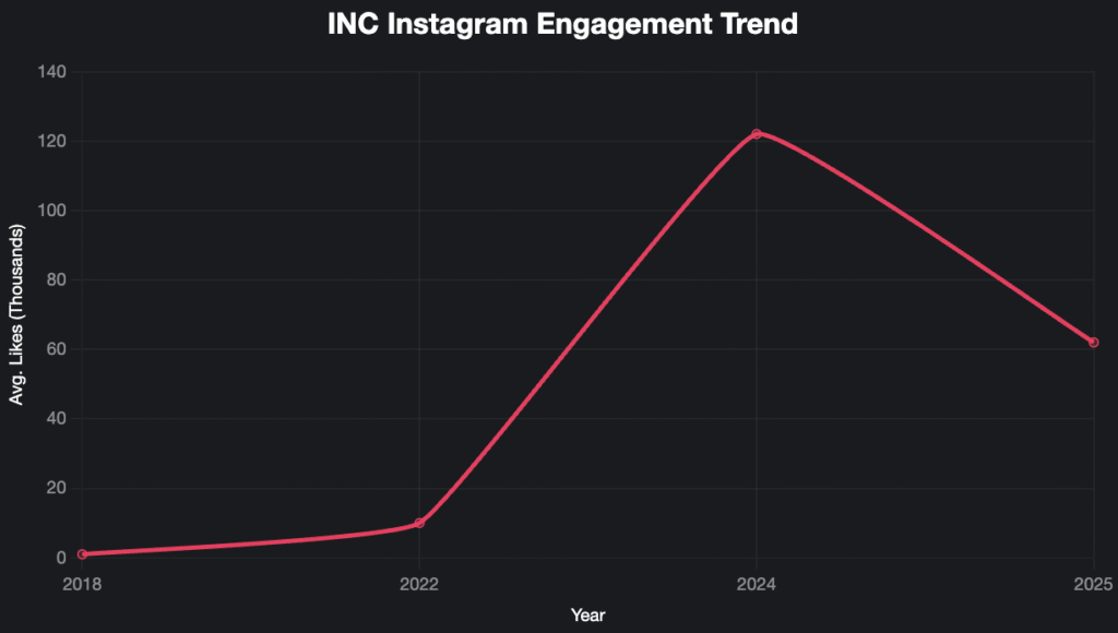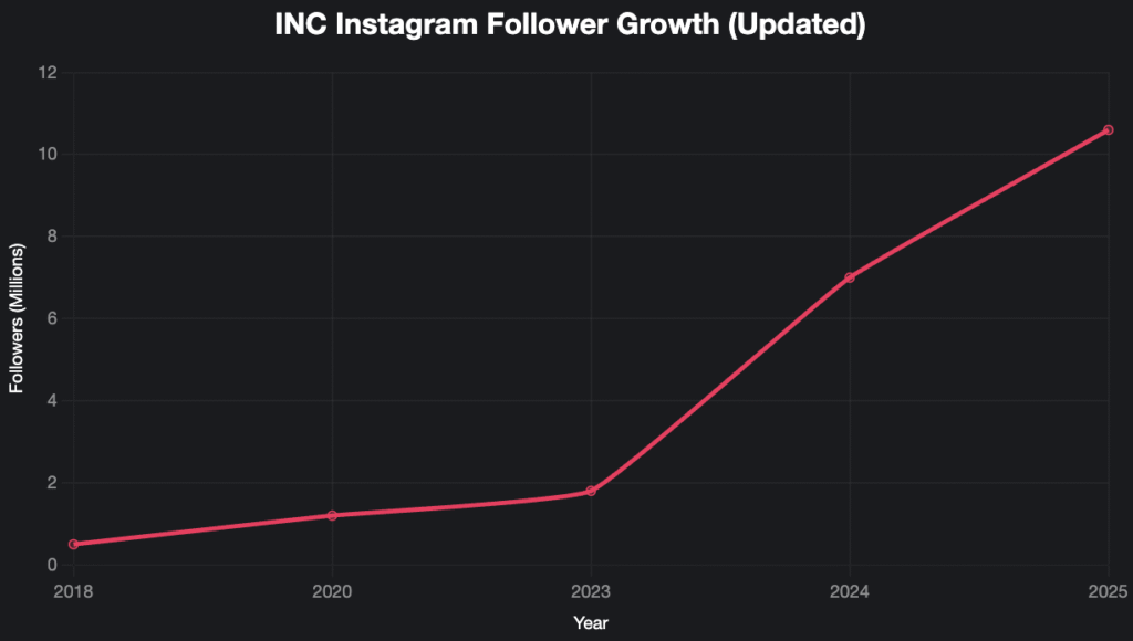 Without further ado, let us move forward. The one platform where INC has experienced its greatest success is Instagram. It was lagging behind until 2022 and then it just shot up massively. Between 2023 and now, INC’s follower count on Instagram growed from less than 2 million to more than 10 million.