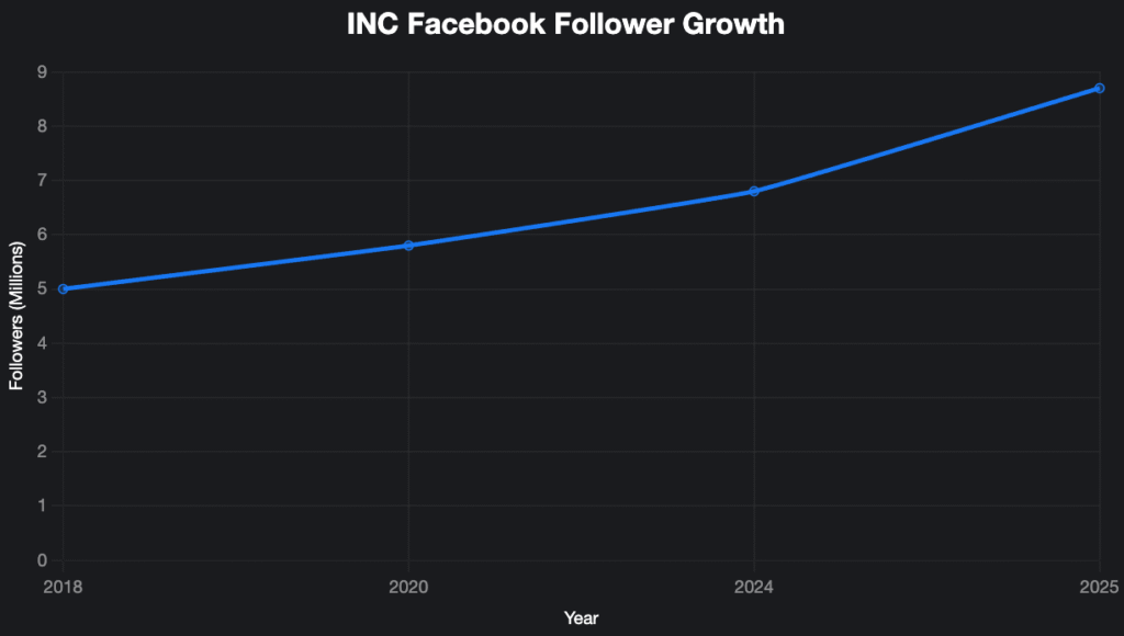 The only platform that bucks the trend is Facebook. The INC showed the least growth on the platform. Its followers increased from 5 million in 2018 to 8.7 million in 2025. It clearly shows that the INC is not putting as much effort on Facebook as it is on other platforms.