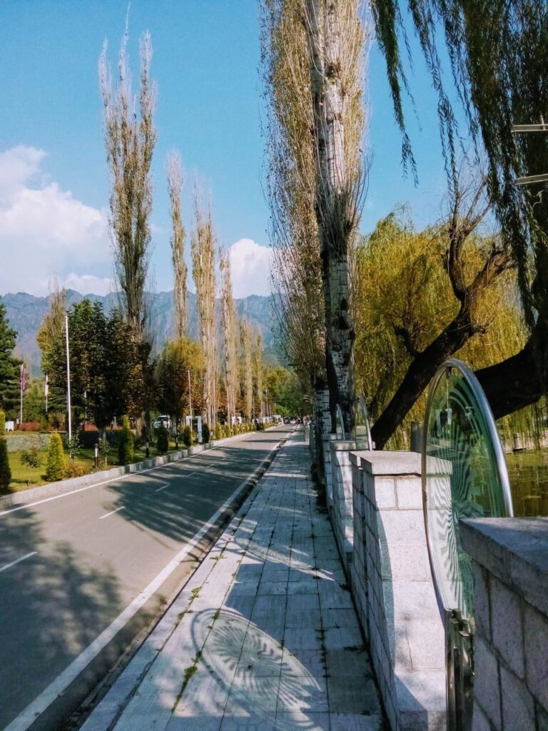The road from the airport to Srinagar unfurls like a half-remembered poem. One that began writing itself forty years ago, the first time I visited Kashmir. That old poem curves threading through the poplar trees, their leaves trembling in autumn’s evening breeze. I arrive on October 10, 2025, stepping into a valley where the air is still sharp with a hint of pine scent as it is with the weight of unspoken stories. The bluish hills, their edges fading in the haze of the Pir Panjal, stand as a quiet backdrop. My restlessness hears them whisper of lands beyond.