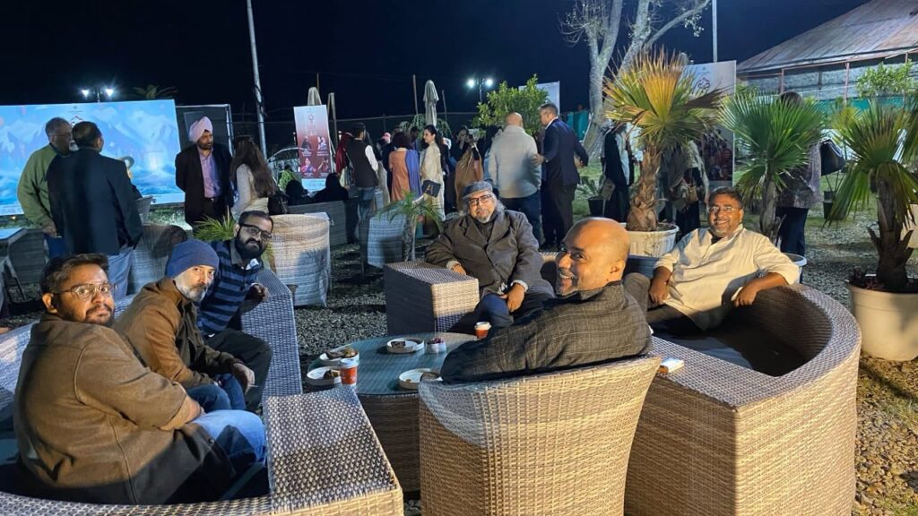 The second day remains softer, like a sigh after a brisk breeze. My only task is a podcast with Jayesh Gangan of Awaara Musaafir, which we record in the same hanging courtyard with the lake as my backdrop. Jayesh’s questions roam like a nomad’s trail. They touch my book, Kashmir’s place in the world, and Pakistan’s fraying edges. Sanchit, his production partner, grins through his lens; he calls the setting “cool.” I smile, less for the camera than for the moment’s ease.