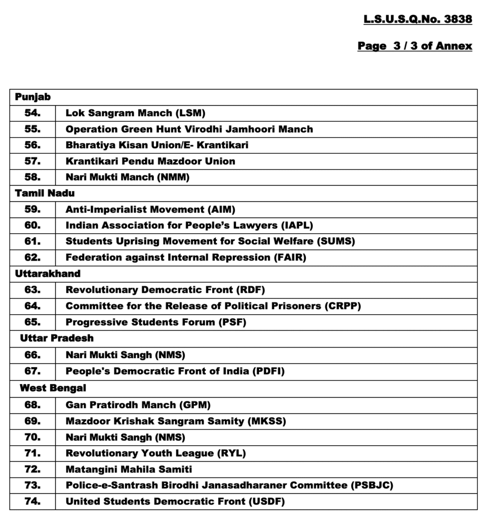 The USDF is one of the Maoist frontal organisations operating out of West Bengal. It is the UPA Government that said this in the Parliament in 2014. Then Minister of State in the Ministry of Home Affairs, RPN Singh, had said in response to a question on Maoist front organisations. The USDF was one of the 7 Maoist front organisations operating in West Bengal in 2014.