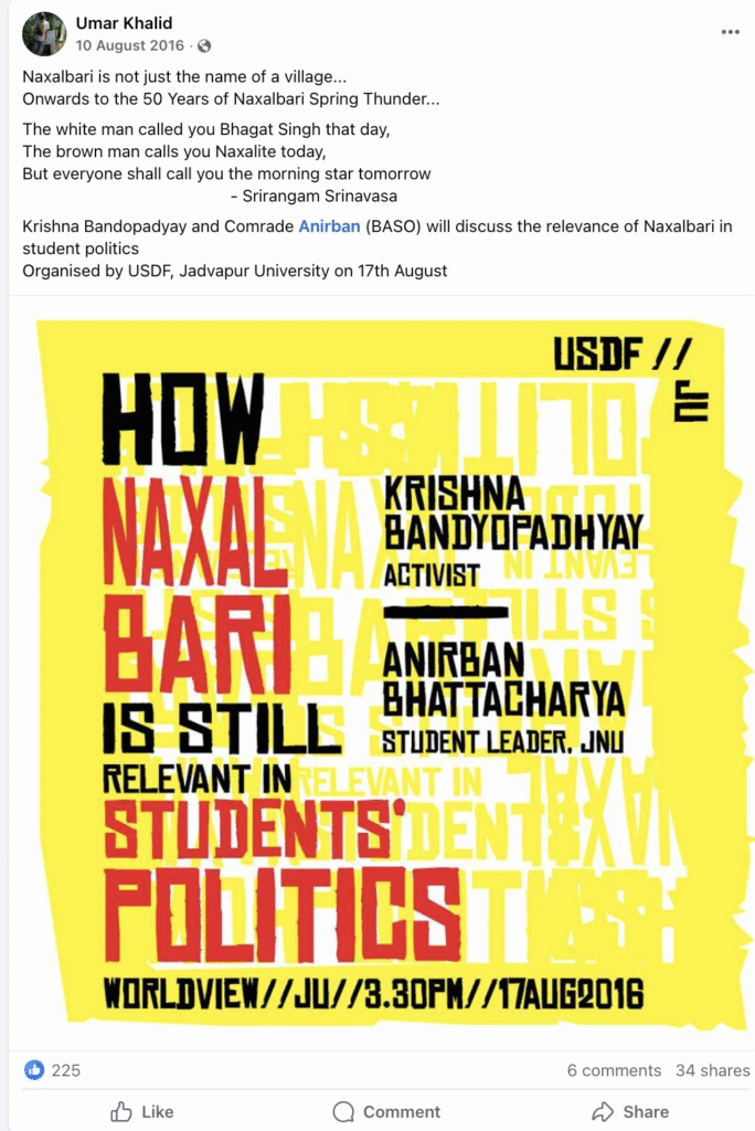 He has also promoted an USDF event on “How Naxalbari is still relevant in Students’ Politics”.